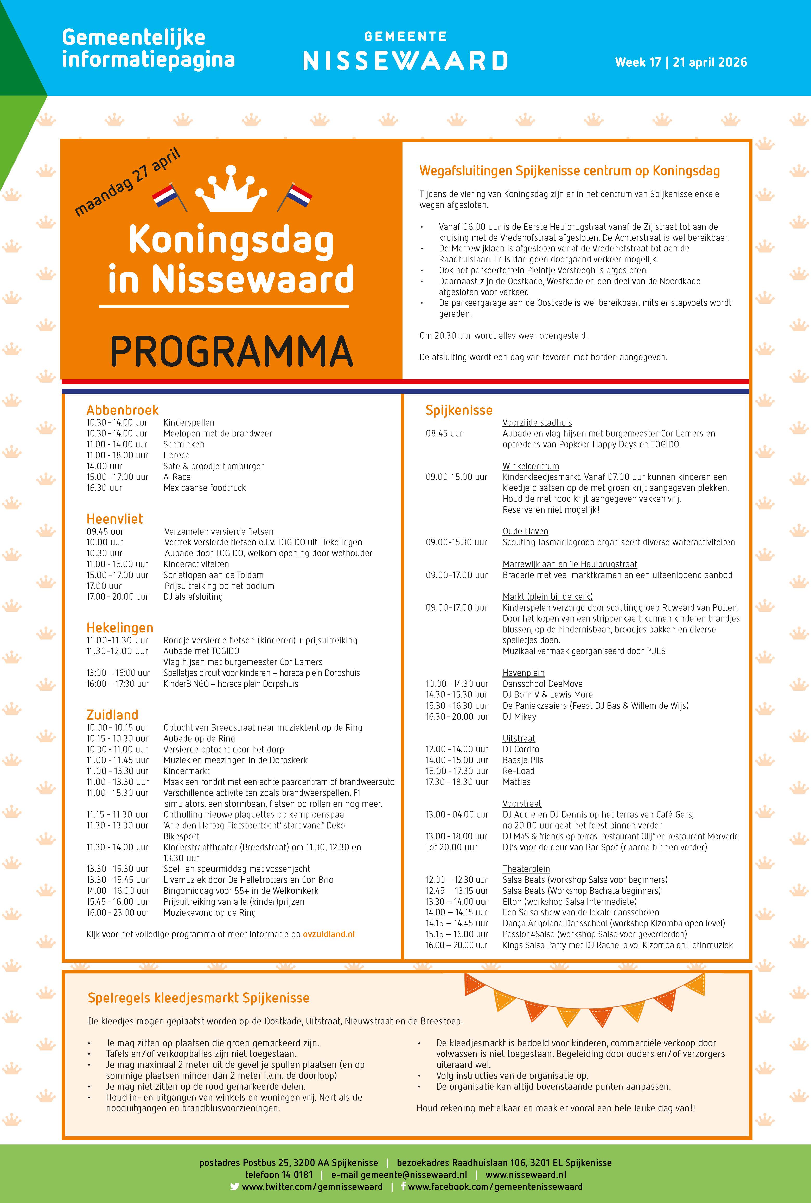 Maandag 27 april vieren we Koningsdag en staat er weer van alles op de agenda. In elke kern van Nissewaard zijn er verschillende activiteiten voor jong en oud. Download het complete programma of bekijk de activiteiten per kern.